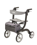 The Nitro Rollator in black offers a Euro-style mobility solution designed for everyday use, delivering a clean, modern profile that fits seamlessly into home and community settings. Built around a lightweight aluminum frame, this rollator emphasizes safety, comfort, and ease of use for shopping, running errands, and short trips around town. Its understated black finish provides a timeless, versatile appearance, while practical storage options and consideration for all-day wear make it a dependable companion for a wide range of users. The brake cable is positioned inside the frame for added safety and a tidy, snag-free look that helps prevent accidental catches during movement.