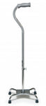In summary, the Lumex Silver Collection Quad Cane—Low Profile Aluminum, Small Base offers a durable, lightweight solution with a focus on balance, control, and convenience. Its compact base, ergonomic offset grip, and straightforward height adjustment system work together to deliver reliable support for everyday activities, while the rounded base edges and silver finish contribute to safety and durability in both indoor and occasional outdoor environments.